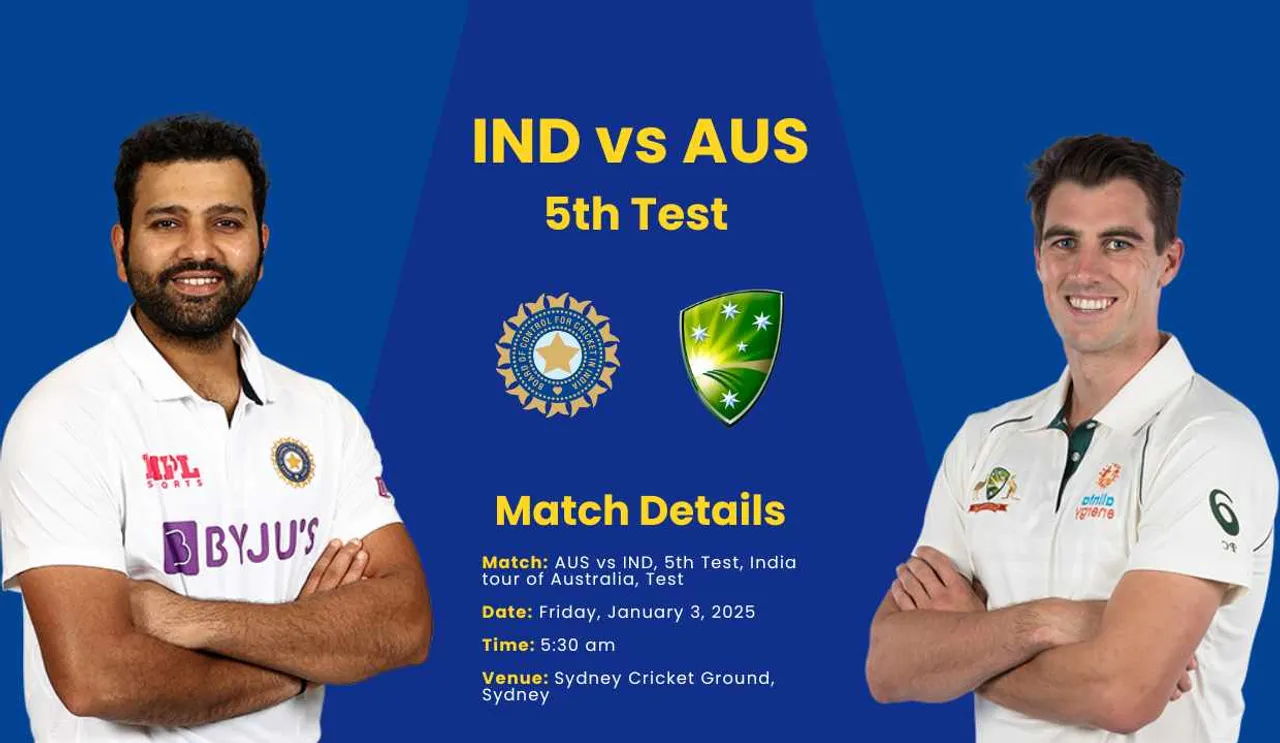 The 5th Test between India and Australia is scheduled to start on January 3, 2024, and end on January 7.