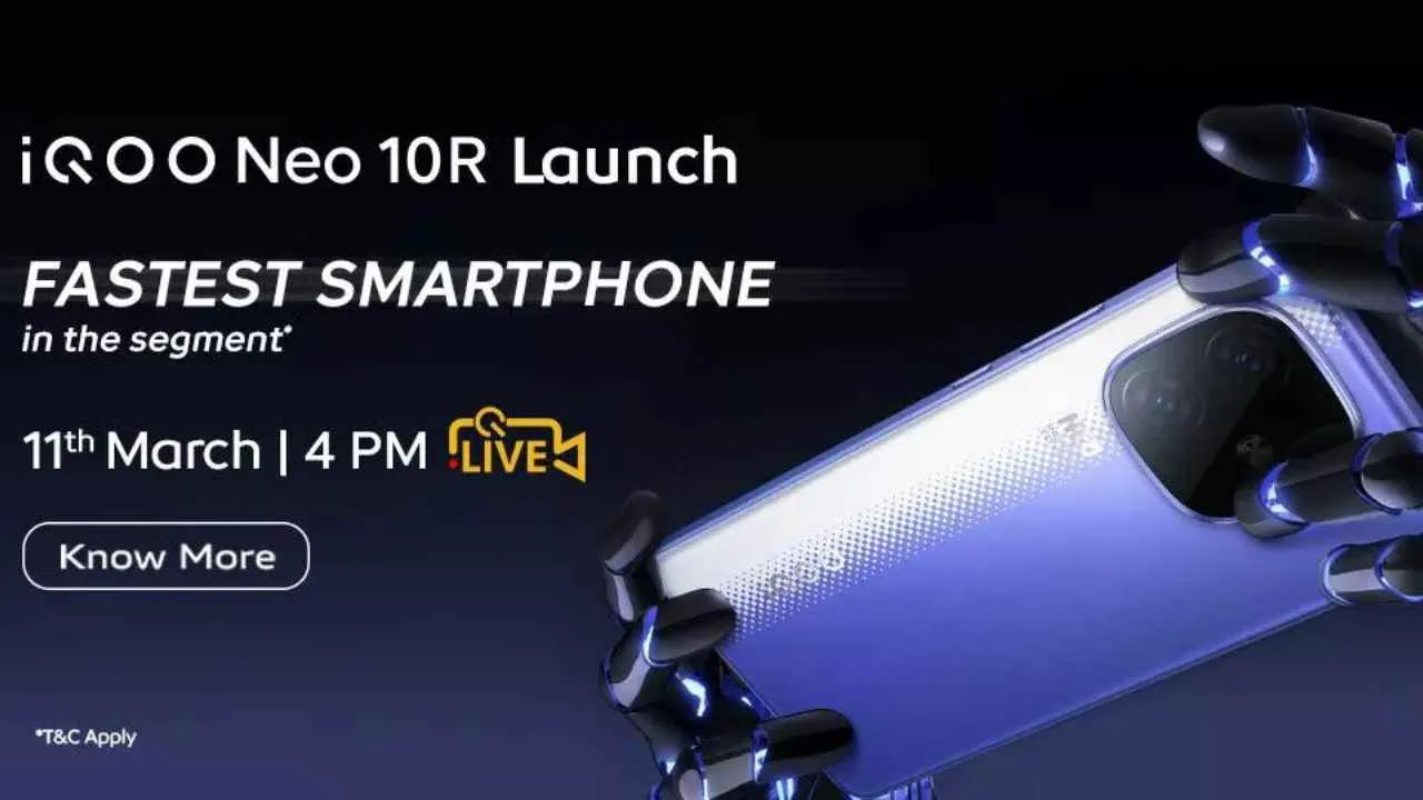 IQOO Neo 10R 5G phone India launch date is March 11. This mobile will be officially launched in the market. The company will announce Neo 10R price, features and specifications at 4 pm on March 11. Along with this, information about IQOO Neo 10R sale date and offers will also be given through the online launch event.
