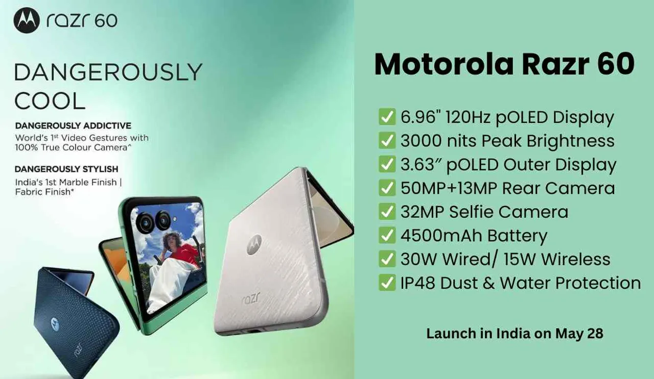 Motorola launched the Razr 60 Ultra earlier this month. At the same time, the company has officially shared the India launch date of the Motorola Razr 60. Regarding this, the microsite has gone live on the online shopping site Flipkart. It will be introduced in India on May 28 and it will enter in a single variant with 8GB RAM + 256GB storage. Let's know the complete information revealed in detail.