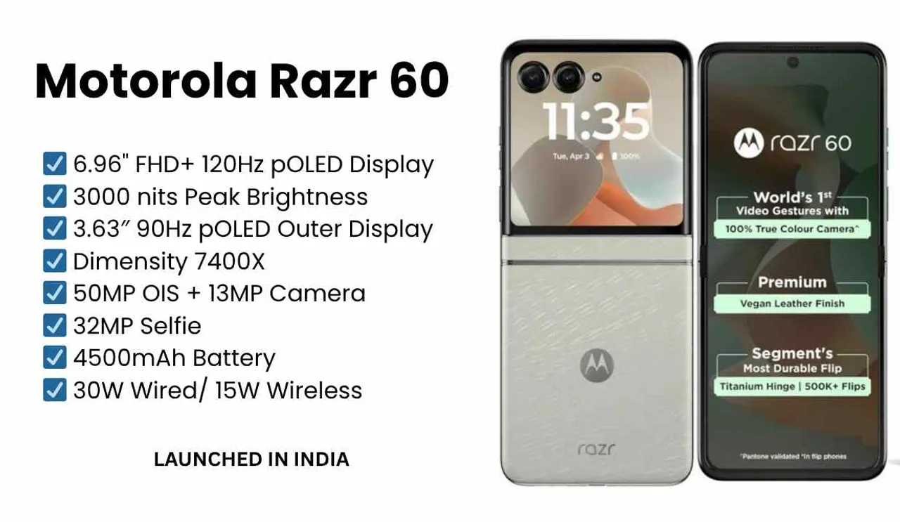 Motorola has introduced the new Motorola Razr 60 in India in its foldable smartphone lineup. This new flip phone is not only equipped with powerful features but is also premium in terms of design. This time the company has introduced many features like innovative build quality, improved dual display, strong performance and latest Android 15 operating system. Let us know further complete information about the Moto Razr 60.