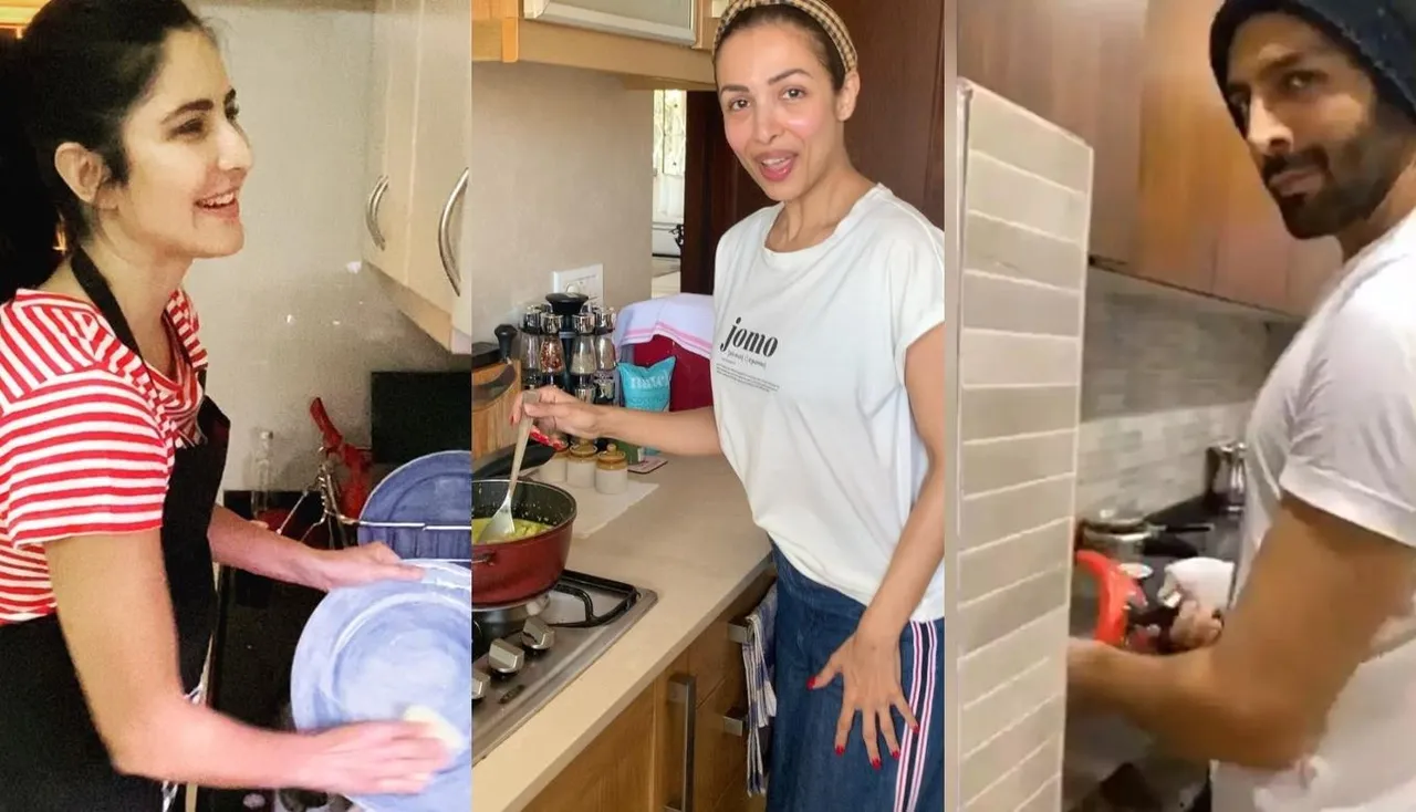 From Kartik Aaryan, Malaika Aririsa To Katrina kaif, let's have a look at these stars who turned house maids amid self-quarantine.<