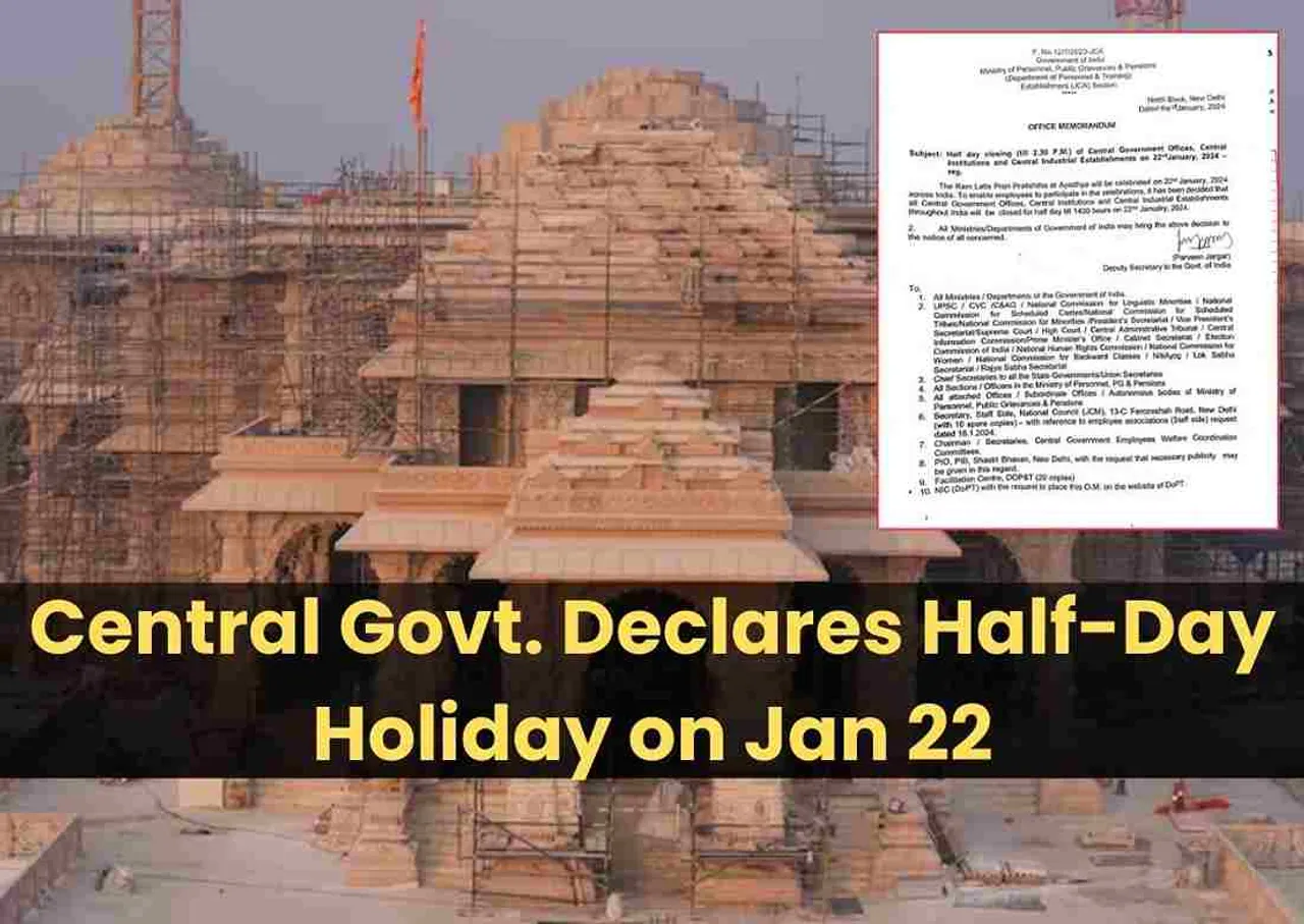 Ram Mandir Celebration: In a noteworthy move, all central government offices in India will observe a half-day holiday on January 22. This decision, announced by Union Minister Jitendra Singh, is in honor of the consecration of the Ram Mandir in Ayodhya. The rationale behind this move is to allow employees to partake in the celebrations, acknowledging the profound sentiments associated with this historic occasion.