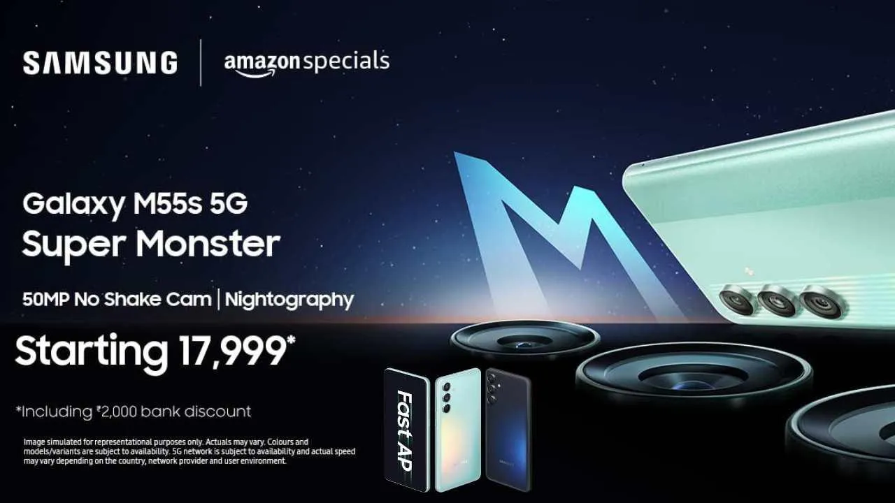 The price of Samsung Galaxy M55s 5G in India starts at Rs 19,999. The phone will be available for purchase from September 26 on Samsung and Amazon India websites and select offline retail stores. The phone is available in two colors — Coral Green and Thunder Black.