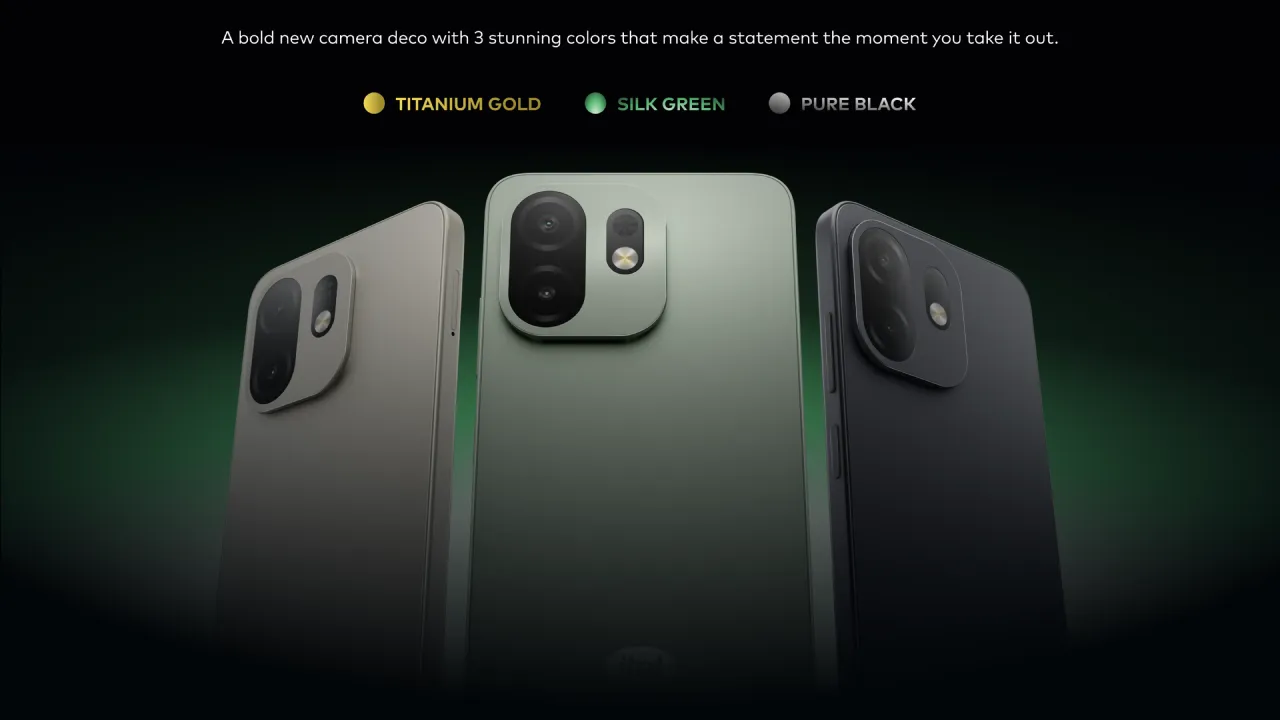 The official teaser provides a first glimpse of the design and confirms that it will be available in Pure Black, Silk Green, and Titanium Gold color options.